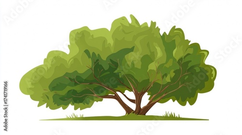 Fototapeta premium A single green oak tree and fresh lettuce plant with leaves and a branch...