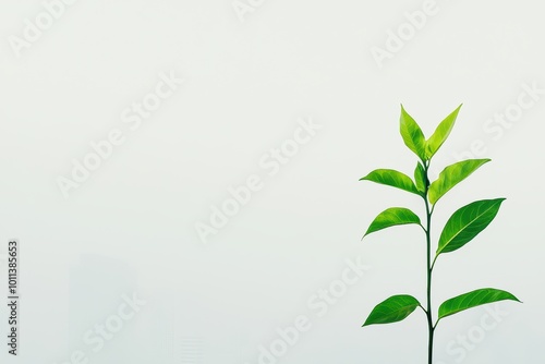 Fototapeta premium A single green plant against a foggy background, symbolizing growth and...