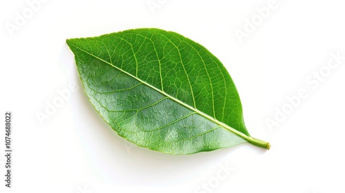 Obraz premium A single green tea leaf with veins visible, suggesting freshness and quality...
