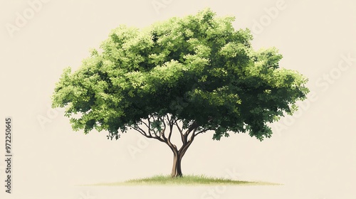 © BozStock, Obraz premium A single, green tree with a thick canopy and thick trunk.
