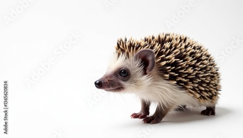 Fototapeta premium A single hedgehog against a stark white backdrop, showing its spines clearly , white, image, animal