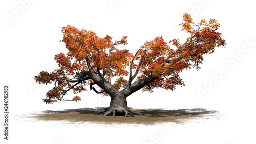 Naklejka premium a single high Japanese Maple tree in autumn on a sand area - isolated on white background