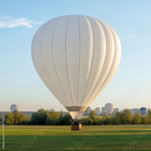 © Cozy Art, Obraz premium A single hot air balloon rising against a clear blue sky