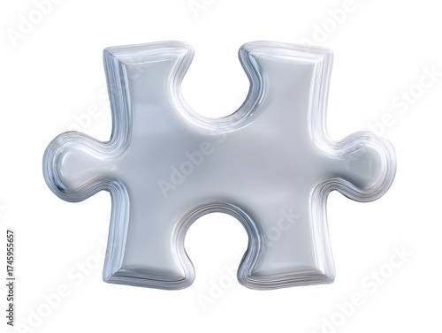Obraz premium A single jigsaw puzzle piece with a smooth, highly reflective white/silver...
