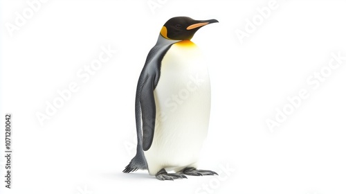 © Arifin Studio, Fototapeta premium A single king penguin standing on a white background.