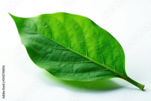 © Machita, Obraz premium A single large leaf isolated on a white surface, stem, herbaceous