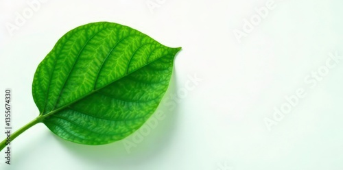 Fototapeta premium A single, large leaf spreads its veins against a clean white backdrop, green,...