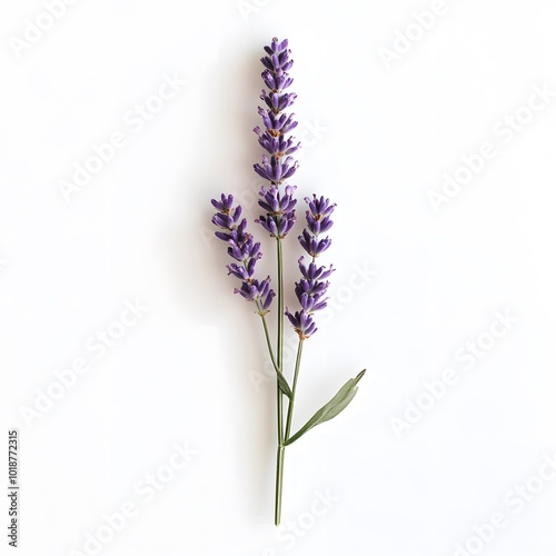 © Almultazam, Obraz premium A Single Lavender Stem with Multiple Flower Spikes Against a White Background
