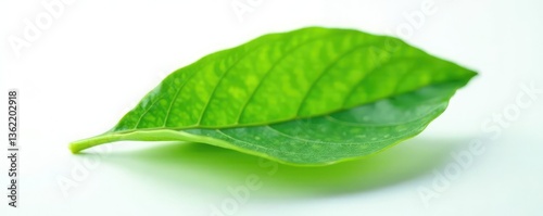 © Jakkrit, Fototapeta premium A single leaf isolated on white background with a soft focus effect, texture, closeup, botanical