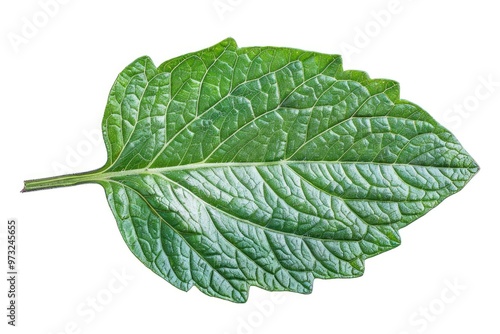 © Fotograf, Obraz premium A single leaf photographed against a plain white background