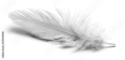 © Mood, Obraz premium A single, light gray feather gently rests on a white background