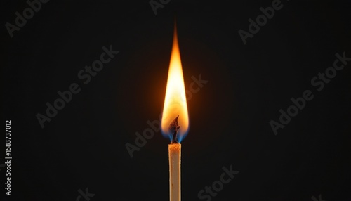 Fototapeta premium a single lit candle, its flame casting light against a dark background.