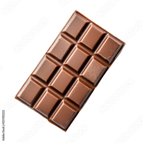 © yendisupiandi, Fototapeta premium A single milk chocolate bar is shown against a black background in a high angle close up shot.
