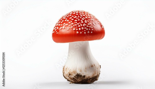 © Roger, Obraz premium a single mushroom with a red and white cap on a white background