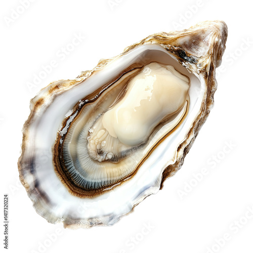 © oki, Naklejka premium A single, open oyster displays its edible, creamy interior.