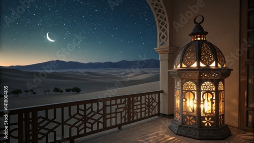 © Asmaa_Asmadi, Fototapeta premium a single ornate arabic lantern glowing