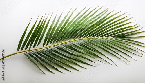Naklejka premium a single palm frond with long slender leaves isolated on a white background