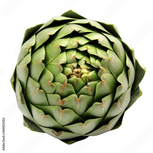 Fototapeta premium A single, perfect, hyperrealistic artichoke, with its leaves slowly peeling...