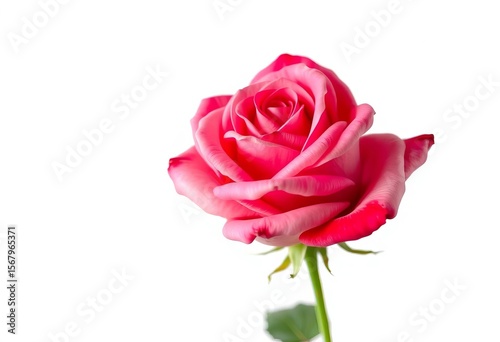 Fototapeta premium A single, perfectly preserved rose, blossoms fully open, against a stark white background, Valentine's Day, white rose