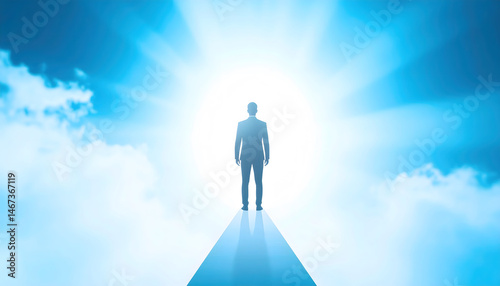 Obraz premium a single person walking towards a bright light, which appears to be emanating...