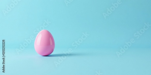 Fototapeta premium A Single Pink Egg on a Light Blue Background, Minimalist Springtime Design Concept