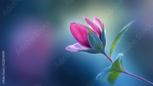 © Penatic Studio, Naklejka premium A Single Pink Flower Bud Blooms Softly