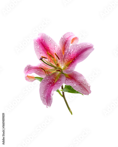 Naklejka premium A single pink tiger lily flower adorned with fresh water droplets
