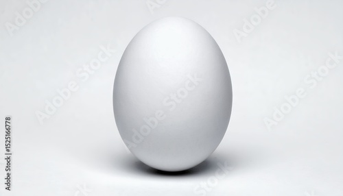 Fototapeta premium A single, pristine white egg stands on a plain white background, subtly illuminated.