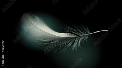 © Rere_Art151, Obraz premium A single pristine white feather against a dark background