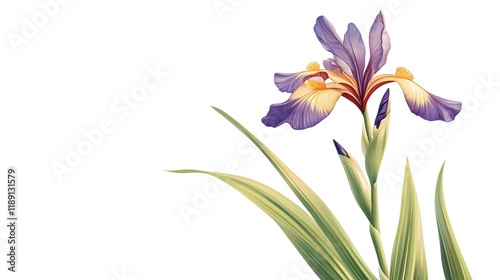 Naklejka premium A Single Purple and Yellow Iris Flower Blooms Beautifully