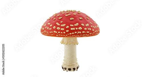 Obraz premium A single red-capped Amanita muscaria mushroom on a white background, highly detailed