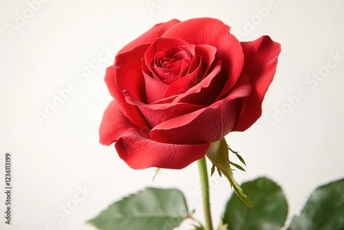 © Fotograf, Fototapeta premium A single red rose placed in a vase with green leaves, ready for use