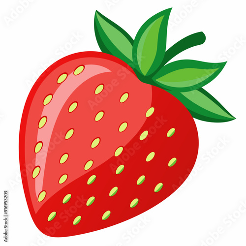 © Nurul, Obraz premium A Single Red Strawberry with Green Leaves