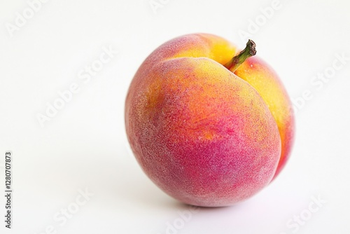 © Fotograf, Fototapeta premium A single ripe peach on a white background