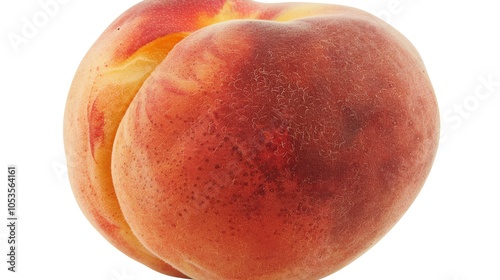 © nurionstudio, Fototapeta premium A single, ripe peach with a red blush and fuzzy skin, isolated on a white background.