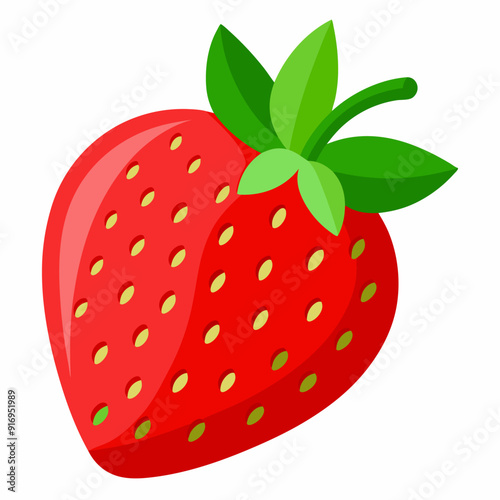 © Nurul, Obraz premium A Single Ripe Strawberry with Green Leaves