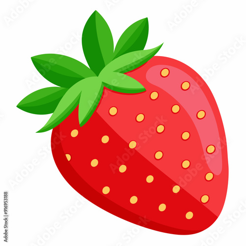 © Nurul, Obraz premium A Single, Ripe Strawberry with Green Leaves