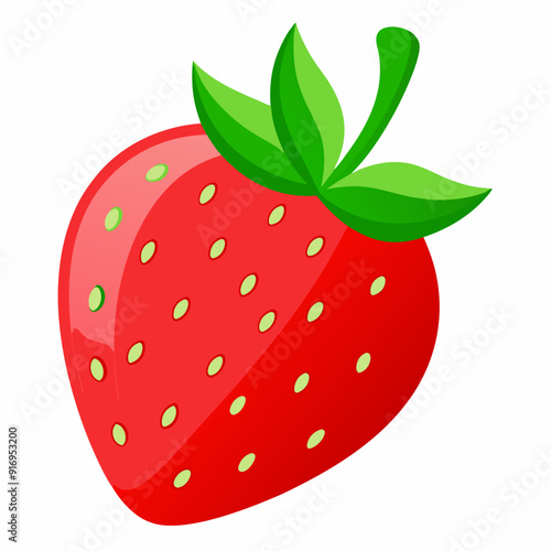 © Nurul, Obraz premium A Single, Ripe Strawberry with Green Leaves
