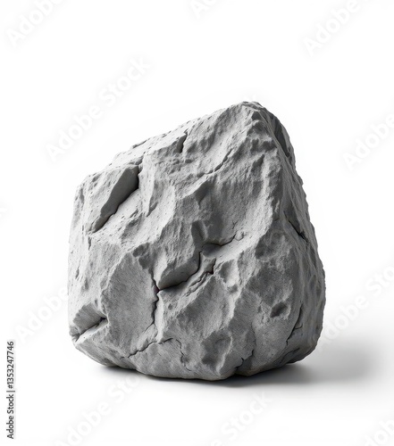 Obraz premium A single, rough-textured grey rock isolated on a pure white background, substance, stock, design