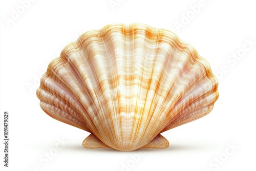 © Fotograf, Obraz premium A single seashell sits on a clean white background with a subtle shadow