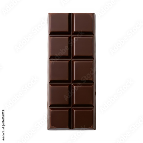 Fototapeta premium A single, smooth, dark chocolate bar with ten segments, presented against a...