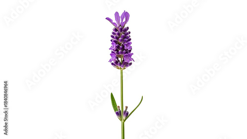 © GRAPH Studio, Naklejka premium A Single Stem Lavender Flower with Leaves on a White Background