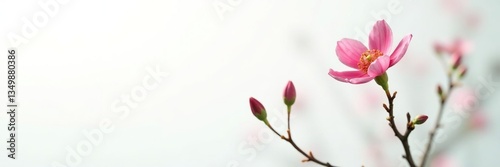 © methinee, Fototapeta premium A single stem of a flowering plant in white space, branches, botanicals, plant life