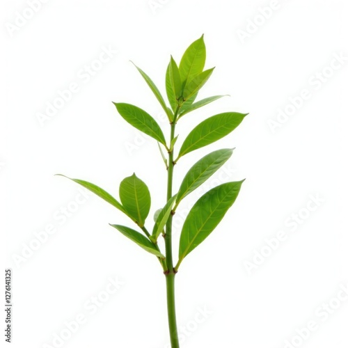 © สถาพร บัวระบัติ, Fototapeta premium A single stem with leaves isolated on a white background, flora, solitary, botanical