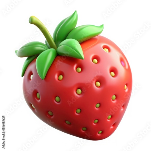 © mdsamsul, Obraz premium A single stylized strawberry with green leaves and yellow seeds on a white background studio shot