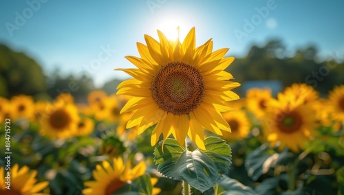 Fototapeta premium A Single Sunflower Basking in Sunlight