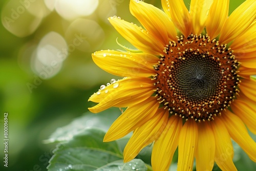 © stardadw007, Naklejka premium A single sunflower, captured in an extreme close-up. The intricate details of its petals and the vibrant contrast between the deep brown of its seeds and the bright yellow of its petals are emphasized