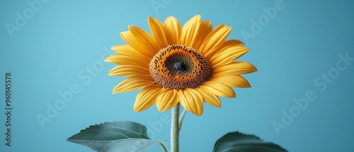 Fototapeta premium A Single Sunflower in Bloom Against a Blue Background