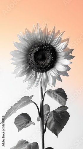© NpicArt, Fototapeta premium A Single Sunflower in Monochrome Against a Peach Background