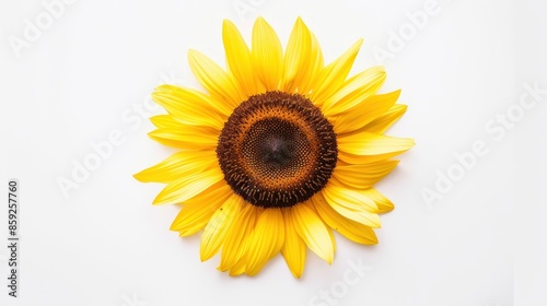 © @_ greta, Fototapeta premium A Single Sunflower on a White Background